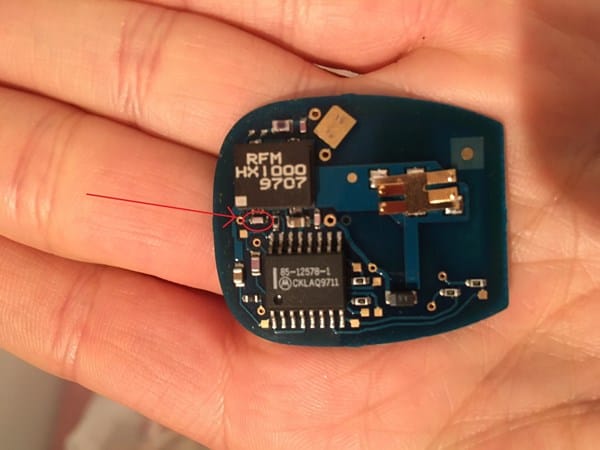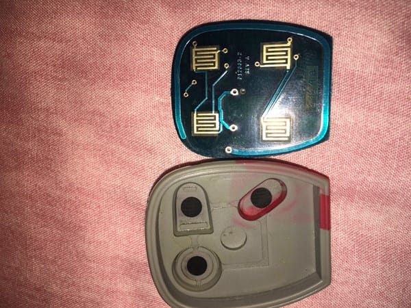 El mando de apertura de puertas del coche no funciona. Es un Opel Sintra 1997. Al abrirlo veo que tiene este componente despegado. ¿Alguien sabe cómo se llama, cómo puedo comprobar si está bien con el multimetro y si podría pegarlo de nuevo para repararlo?