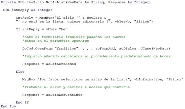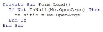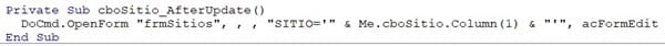 Que SI encuentra el registro PLAZA en la tabla SITIOS pase a otro formulario con este mismo dato buscado.