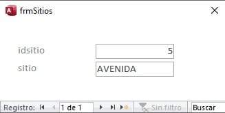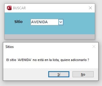 Y si NO encuentra el registro permita registrar los datos en la tabla SITIOS.