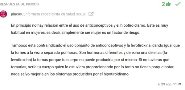 ¿Tengo duda sobre levotiroxina y anticonceptivos?