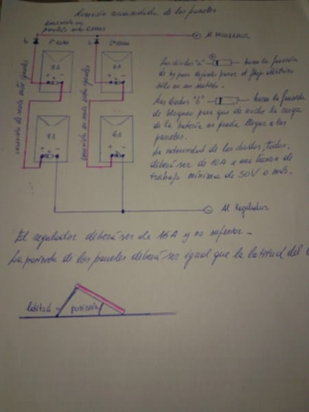 Bueno, envíame las características de los paneles y te contestaré con el esquema analítico de conexionado para la instalación... Sería también interesante saber la ubicación de la instalación de forma que puedo sugerirte la inclinación ideal...