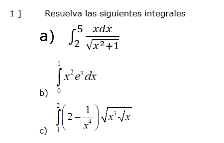 MatemáticasIngeniería InformáticaCiencias e Ingeniería martin perez el 5 ene. 21 1 ] Resuelva las siguientes integrales definidas Ejercicio de matemáticas1 ] Resuelva las siguientes integrales definidas Seguir Siguiendo Dejar de seguir