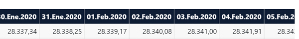 Y esta tabla se va actualizando en Excel automáticamente con los nuevos valores que proporciona la web.