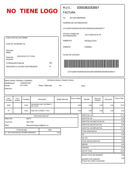No. De factura