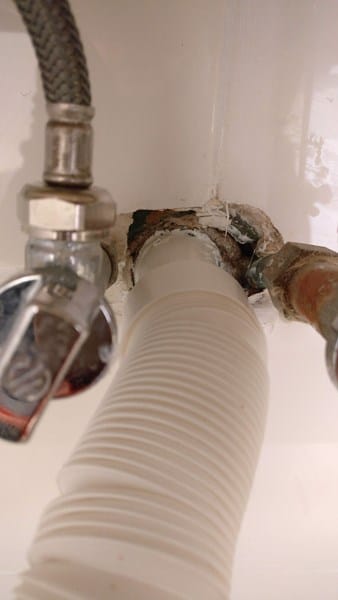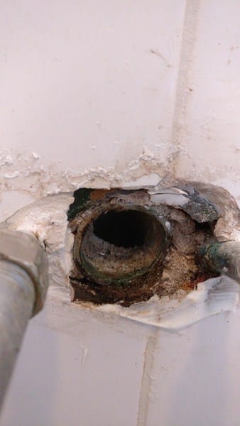 Estoy cambiando un lavabo por otro en una casa antigua, y el desagüe empotrado en la pared parece de plomo o de acero. Adjunto foto.