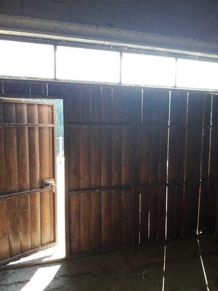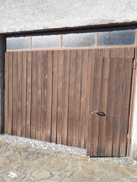 Tengo esta puerta de garaje que quiero arreglar manteniendo la estructura de hierro que se encuentra en buen estado.