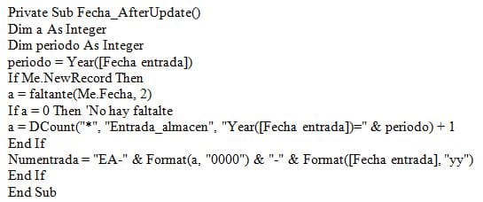 En el formulario Pedidos tengo un campo fecha que después de actualizar genera un número con formato, según la fecha introducida y asociado a un módulo.