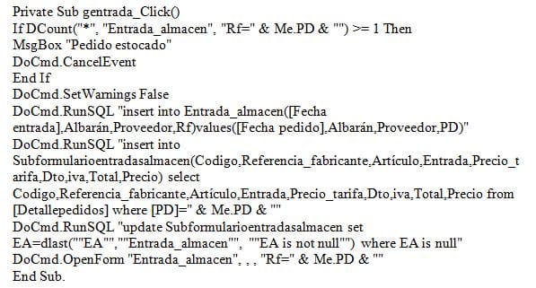 El problema que se me genera es que al entrar en el campo "Fecha entrada" una vez que se han pasado los datos de pedidos a entradas y el formulario se abre filtrado en el registro indicado, en el campo Numentrada no se pone nada, que vacío.