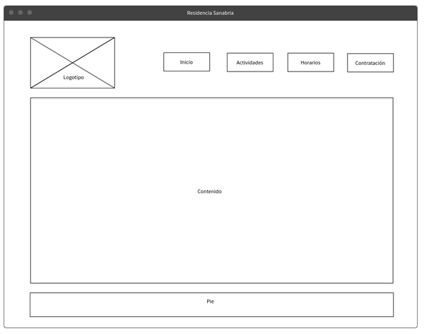 - Capa de Inicio: Incluirá un banner de la residencia y un párrafo de presentación. Esta será la opción por defecto. Podéis usar la herramienta canvas.