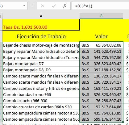 Tengo columna C con valore y A1 con otro valor, quiero hacer lo siguiente; multiplicar valores de C