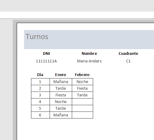 Quiero sacar un cuadrante de turnos anual por trabajador. El tema es que tengo realitzada la consulta de ref. Cruzados y la info me sale en una única fila. ¿Cómo realizo ahora el informe? ¿He de modificar la consulta de refencias cruzados?