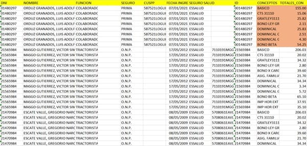 Mi consulta es como haer para que solo busque y extraiga los conceptos según el colaborador filtrado por DNI. Como, CTS, DOMINICAL ETC. Ya que todos los colaboradores no tienen los mismos conceptos. Y que al extraer y pegar en la plantilla, esta no pierda su formato. Adjunto imágenes de ejemplos.
