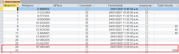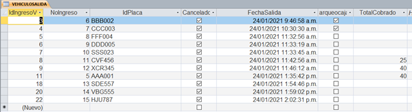 Expertos: Tengo una tabla llamada VEHICULOSSALIDA con un campo llamado TotalCobrado. Y un Noingreso Relacionado