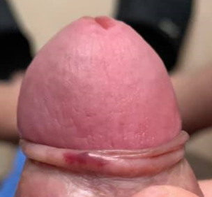 Mancha roja parecida a una costra dentro del prepucio, que puede ser