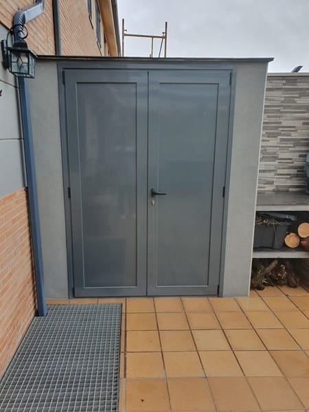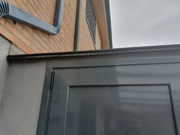 Tengo un armario exterior que he construido con ladrillo. El techo está construido con doble azulejo (un azulejo hacia abajo + cemento + azulejo hacia arriba). Lo hicimos así porque no nos gustaba las tejas para un armario tan pequeño y poner sólo un azulejo suponía que la parte volada que se vería por abajo sería la parte fea del azulejo. Las puertas son de aluminio. Al construir el tejado no nos dimos cuenta de hacerlo con más vuelo(sólo sobresale 3cm), de forma que el agua de la lluvia cae sobre la parte superior de la puerta de aluminio y entra agua para dentro (digamos que donde se juntan las dos hojas de aluminio el cierre no es hermético del todo en la parte de arriba). Total que a veces tenemos un buen charco de agua dentro del armario. ¿Cómo podemos solucionarlo? Inicialmente habíamos pensado en poner un pequeño canalón para recoger el agua que cae el tejado pero hay muy poca distancia entre el cerco de la puerta y el techo (apenas 3cm ). Cualquier canalón que pusiéramos taparía el cerco de la puerta de aluminio (lo cual no lo veo práctico ni bonito). Otra opción sería alargar el tejado (pero no sabemos muy bien cómo hacerlo de forma que quede bien y no se note un pegote raro). ¿Tenéis alguna idea?