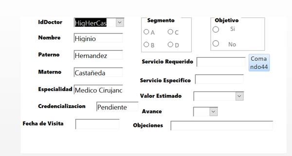 Aquí mando a traer lo de una tabla, capturo en los siguientes textos pero a la hora de guardar me marca error 3012