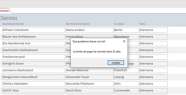 Pero como te decía, podría ser en una consulta, que te diga a cuantos clientes le ha vencido la fecha. Que te muestre en un combinado, los clientes ya vencidos y los día que se han pasado, etc, etc.