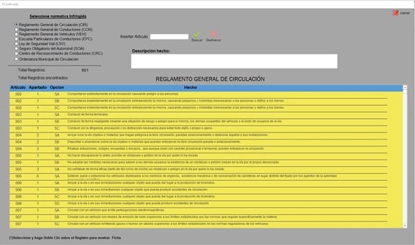Antiguamente tenía tantos Formularios como normativa infringida es decir 8 formularios como los de la imagen anterior, lo que pretendo ahora es que en un solo formulario (FArticulado) pudiera mostrar los datos seleccionados en el subformulario (SubGeneral), para eso uso la siguiente instrucción: