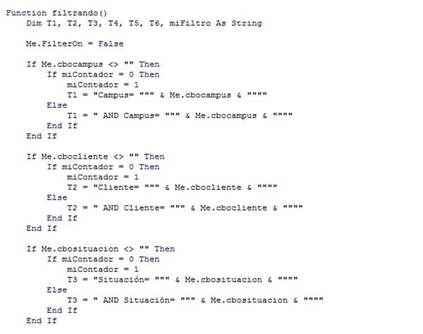 En un formulario voy filtrando registros cuando selecciono desde varios cuadros combinados con la función filtrando