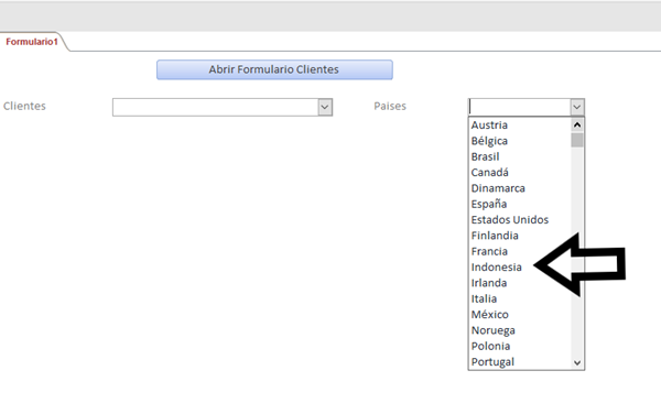 Un formulario no continuo, vamos a llamarlo principal, contiene un combo con nombres de personas. La lista de nombres no se puede modificar en ese formulario. Cuando hay que modificar o añadir un nombre de persona, mediante un comando se abre un nuevo formulario con origen en la tabla de nombres, en el que se pueden corregir y añadir nombres.