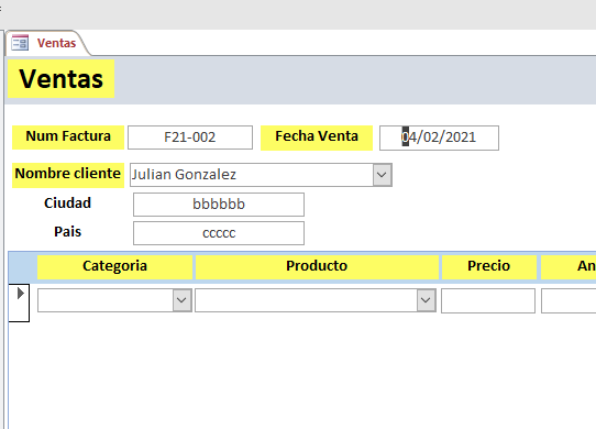 Naturalmente, el formulario principal no se da por enterado de que la tabla nombres ha cambiado y tengo que actualizarlo, lo que hago ejecutando una macro que actualiza el formulario principal y sus subformularios.