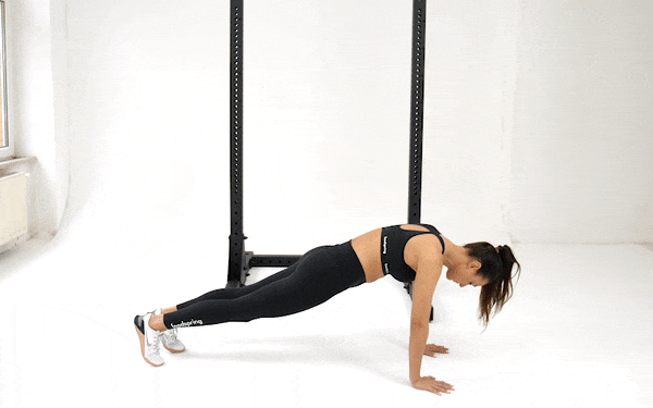 Luego flexiones de dominada piso con escalada, realizar de 25 a 50 repeticiones con cada pierna.