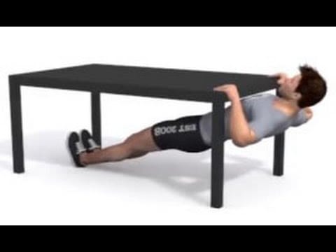Luego 25 a 50 dominadas de barra, sino tienes una barra utiliza una mesa, como en la foto siguiente.