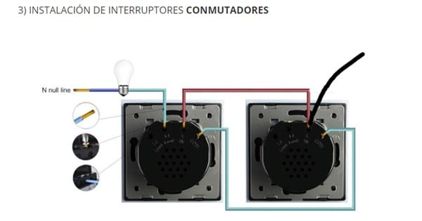 El caso es que no consigo hacer que los conmutadores wifi funcionen. Lo he intentado de todas las maneras, replicando el esquema mostrado en uno y otro conmutador y con distintas combinaciones de cables. Es como que se anula uno al otro. Lo máximo que he conseguido es hacer funcionar uno dejando en el otro uno mecánico instalado, y solo accionando el nuevo (wifi). Si enciendo o apago el mecánico el otro deja de funcionar.