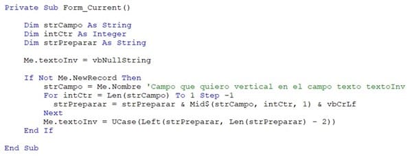 Como puedo hacerle para que en un cuadro de texto de access en vertical la información mostrada sea de abajo hacia arriba en lugar de arriba hacia abajo.