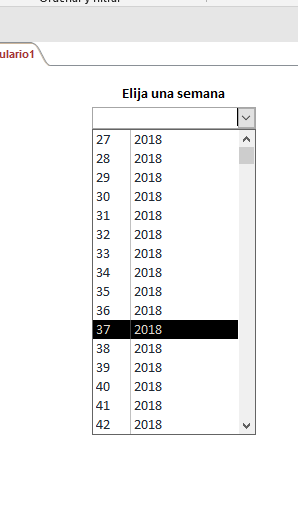 En el ejemplo que te ponía, el código del evento Después de actualizar del combinado elegir semana, que tiene dos columnas Semana=format([fechapedido];"ee") y otra columna Año:Año([fechapedido]) es