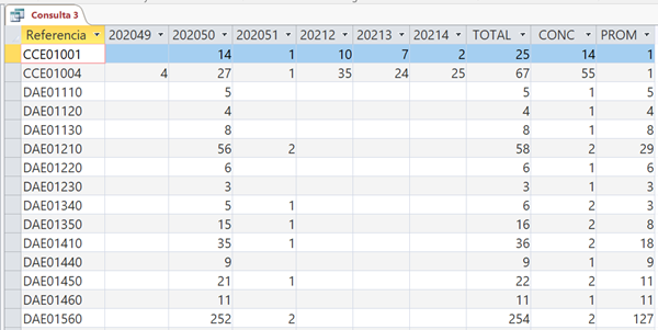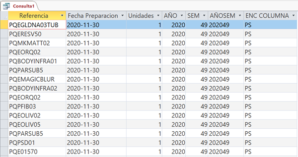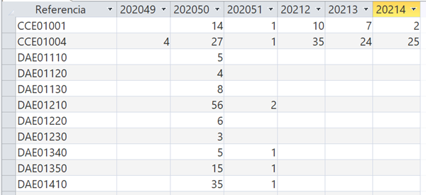 Después hago una consulta de ref cruzadas para obtener finalmente cuantas unidades se han expedido por semana de cada una de las referencias: