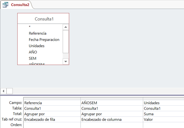Soy enemigo, o al menos no me gustan la consultas de referencias cruzadas. Efectivamente sucede lo que decías, que cambian los encabezados. Pero se puede hacer mucho más sencillo. Te había preparado un ejemplo, pero no había leído lo último, por tanto no sirve para nada. Te propongo, que si quieres, repito si quieres, haz una copia de tu base, pero sólo con la tabla, nada más que con ella y me la mandas a [email protected] y te preparo un ejemplo.