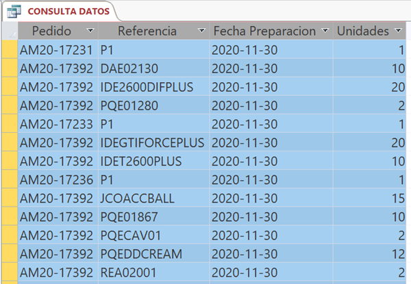No obstante, puede ver la consulta desde Access. Si procesa con el botón "Exporta a Excel" en