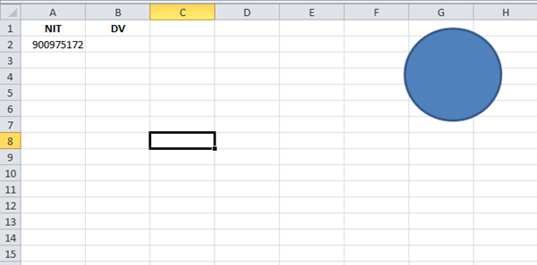La idea es que al darle clic al botón azul, aparezca el DV en la columna B