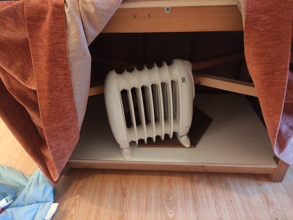 Se me olvidaba indicar, que no hemos puesto la calefacción ninguno de los días, a excepción de un pequeño calentador que metemos debajo de la mesa de camilla y usamos por la noche antes de acostarnos.