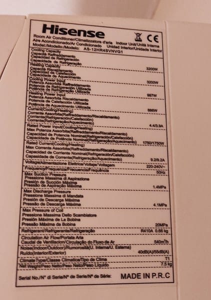 Perdona la tardanza, pero no he estado en casa. Le adjunto una fotografía de las características del split para que pueda ver lo que necesite.