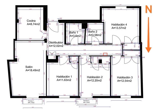 Mándame un plano de tu casa. Señala donde está el Norte y quisiera saber el RH (% de humedad relativa) exterior a las 9 de la mañana, 3 de la tarde y 10 de la noche. Mencionas que tienes higrómetros en todas las habitaciones. Me gustaria comparar RHs interiores y exteriores en cada uno de los momentos que cito.