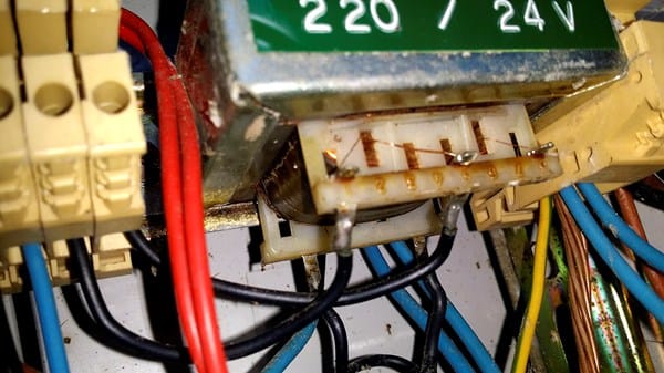 Pero como te he comentado, empieza de pulsador de arranque hacia atrás, pero esta claro que ese trafo huele a chamusquina