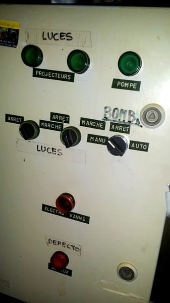 Pongo también de la puerta, en donde están los interruptores para encender los focos y encender la bomba manualmente o de forma automática (con el reloj temporizador):