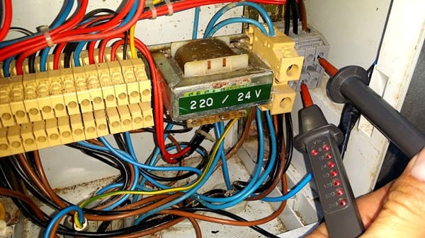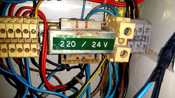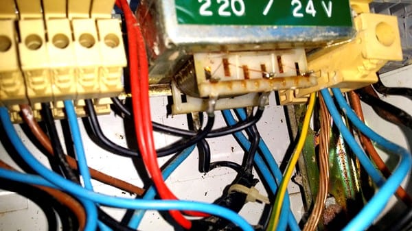 Empieza por medir tensión en el trafo, en la entrada 220 v, la salida tiene que dar 24v, los cables de la maniobra creo que son los rojos ( 24v), síguenos y vete midiendo tensión