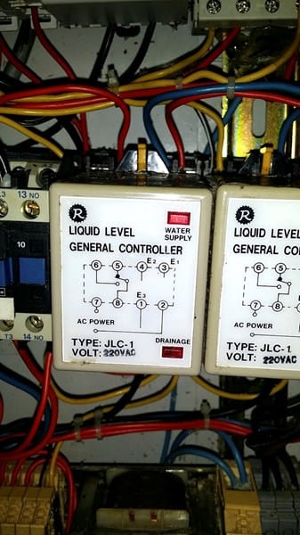 Las sondas que miden el nivel en la arqueta estan muy mal. como ves en las fotos, el cable está roto y se está desintegrando. Además, si no hay agua en la arqueta, NO SE PARA LA BOMBA, sólo se enciende una luz en el cuadro que avisa de que falta agua en la arqueta, pero no la para. Estoy pensando en anular totalmente ese sistema.