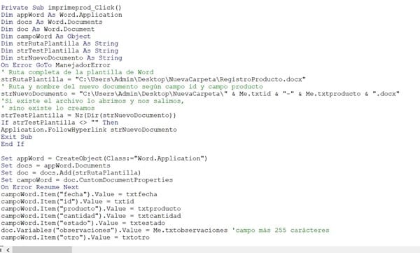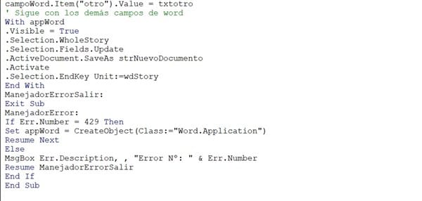 Tengo un código para completar un archivo word con campos doc property, el archivo guarda el documento con el nombre de dos campos del formulario activo.