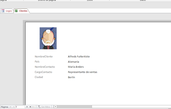 Y por último, en el informe Clientes, le tengo puesto un control imagen Imagen13, y en el evento Al dar formato de la sección donde esté ese control( yo lo he puesto en el encabezado de página, pero la puedes poner donde quieras) le tengo puesto