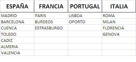 Lo que busco es que al introducir una ciudad, por ejemplo Toledo me devuelva en el segundo Textbox el país al que pertenece que estaría en la primera fila.