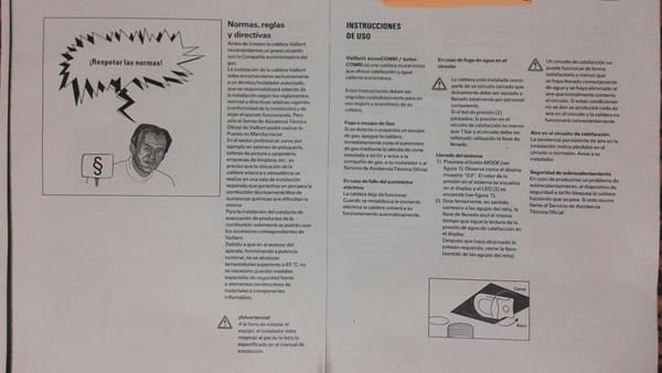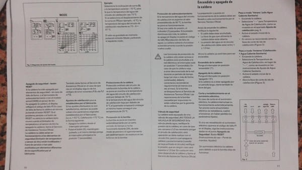 Tengo una Caldera Vaillant Atmo Combi VMW 232-1 que me suele dar error F1 (Falta de Llama según el código de errores del manual). De normal funciona bien tanto la calefacción como el A.C.S., pero de vez en cuando se me apaga. Tal y como viene indicado en el manual, el motivo por el cual se apaga la caldera se debe a un fallo detectado por un elemento de seguridad, Fallo de Llama, Termostato de Sobrecalentamiento o Sensor de Tiro. Sólo cuando es debido a un Fallo de Llama, la caldera se puede reiniciar pulsando RESET, y es este mi caso. Os cuelgo el manual de dicha caldera, que además espero que a algún otro usuario le pueda venir bien. En el primer apartado de la tercera imagen, "Apagado de seguridad - botón RESET", veréis que se indica claramente esto que os acabo de comentar.