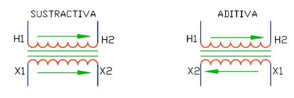 Mientras que la polaridad sustractiva es cuando los bobinados se enrollan en sentido contrario