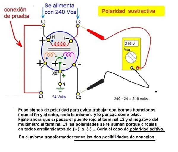 O sea que un mismo transformador puede presentar la polaridad aditiva o la polaridad sustractiva...