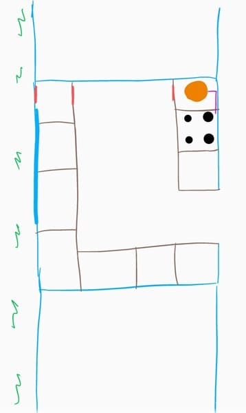 Opción 1: bombona en el mueble que tiene la rejilla y sacar tuberías desde ahí hasta la cocina del lado opuesto. En este caso, ¿las tuberías deberían ir por fuera de la pared? O ¿Se pueden empotrar en la pared para que no se vean?
