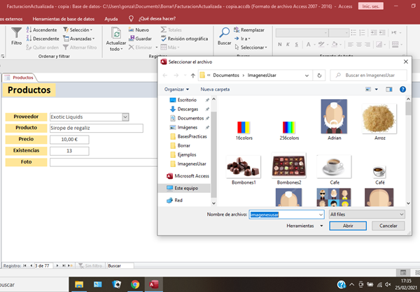 Tengo un formulario principal con un ssubformulario continuo donde voy insertando registros con imagen-