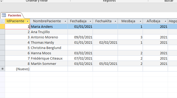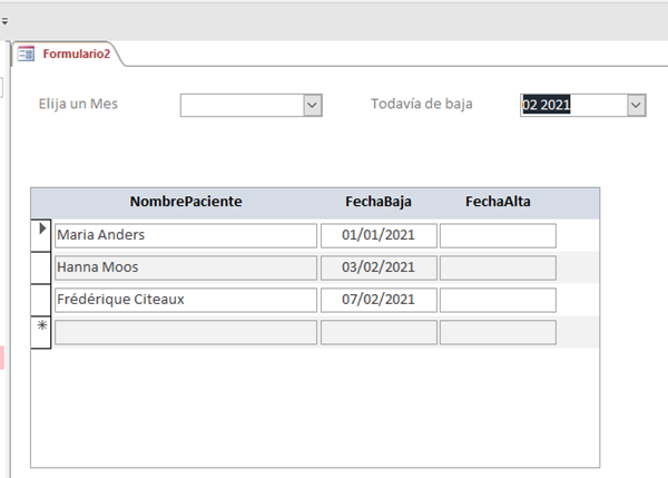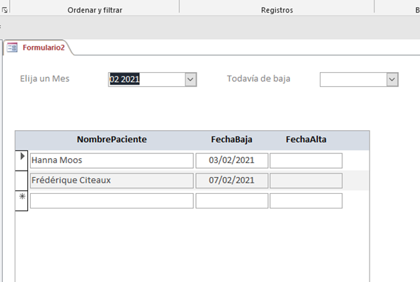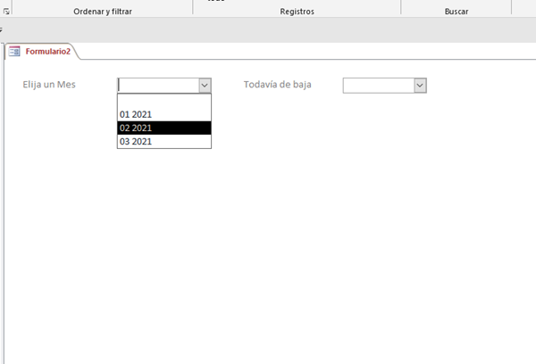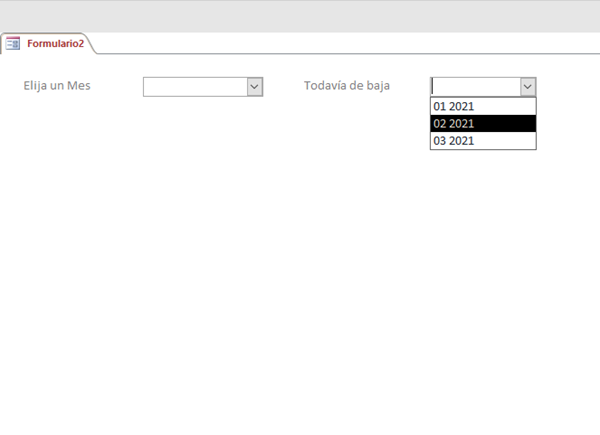 Tengo la siguiente duda. En un formulario tengo elijo el mes y el año para que me filtre las personas que están de baja en el mes y año que le indico. Elijo febrero 2021 y me filtra las personas que están de baja ese mes independiente mente de cuando se haya generado la baja médica.